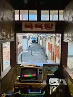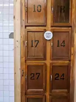 ♨️ The bathhouse interior has been preserved, with the bathtub and locker room storage units as standout features.