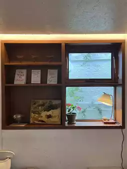 From the entrance, you're greeted by beautiful flowers and a wooden sign 🌸. As you pass through the small garden, you'll find a cozy interior waiting for you. Sitting by the window where sunlight gently streams in is pure relaxation 🌞💛. It's the perfect spot to read a book alone or have a heartfelt conversation with your partner 📖👫.