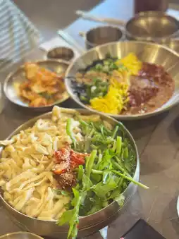 The Minari Onion Noodles and Bibim Makguksu were also delicious, but my personal favorite was the crispy Spicy Chive Pancake.