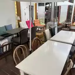 Sunlight pours through the glass windows, and pretty props and plants blend in
