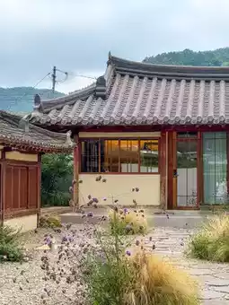 A traditional Korean house accommodation featuring a spacious 200-pyeong yard and a separate annex with a jacuzzi.