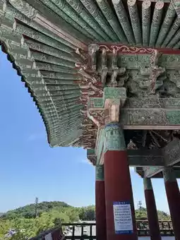 Surrounded by lush pine forests, sunlight occasionally filters through, casting slanted rays onto the stone steps. Birdsong echoes near and far, while the wind gently stirs the leaves, as if nature itself treads lightly, unwilling to disturb.