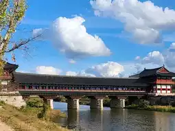 Woljeonggyo Bridge in Gyeongju is a breathtaking blend of history and harmony. Rebuilt with exquisite detail, its red pillars and curved roof reflect beautifully over the calm river below. I visited at dusk, when lanterns began to glow and the bridge shimmered like a scene from a folktale. Walking across felt like stepping into the Silla Dynasty—each beam and tile whispering stories of ancient scholars and travelers. The surrounding paths invite quiet reflection, framed by willow trees and soft breezes. Woljeonggyo isn’t just a bridge—it’s a poetic passage between past and present, wrapped in elegance and serenity.