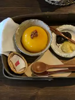 I went there to try the pumpkin bingsu, and also ordered the pumpkin sikhye. Both were so delicious that I was overjoyed! When you order dessert, they also serve injeolmi (Korean rice cake), which melts in your mouth and is simply exquisite. 😋