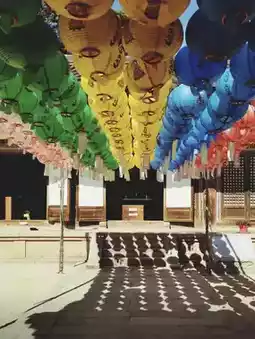 Passing through the treasured Daeungjeon Hall, you'll come across Museoljeon Hall, where you can offer prayers on lotus lanterns. The area in front of Museoljeon Hall is filled with beautiful, colorful lanterns, filled with the fervent prayers of countless people. Hanging a wish at Bulguksa Temple would be a meaningful part of any fall trip. 🙏