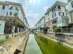 This village complex, composed of neatly built low-rise European-style apartments, is connected by streams flowing from the lake, charming bridges, and well-paved roads, creating picturesque views.