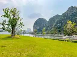 Lan Be Park, located in the center of Ha Long, is a spacious public park where visitors can enjoy a leisurely stroll while admiring the stunning karst islands and mountains of Ha Long Bay. Adjacent to the park is a memorial tower surrounded by a wide grassy field, making it a meaningful spot for Ha Long residents as well.