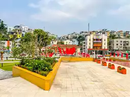 The area is adorned with Vietnam's characteristic tall and colorful buildings, creating a harmonious and picturesque setting that appeals to photography enthusiasts. Visiting on a clear day is especially recommended for capturing beautiful photos, though the heat can be a challenge. For a more comfortable experience, visiting during the cooler evening hours is highly suggested.