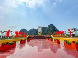 The Vietnam Communist Revolution Memorial Tower connected to the park adds to the atmosphere of this place. It is close to the surrounding coastline, but the strange mountains of Halong City and the well-maintained trees in the park behind the memorial tower provide great photo spots for tourists.
