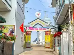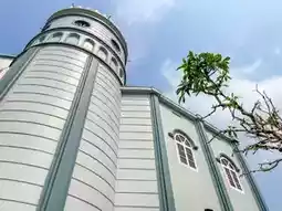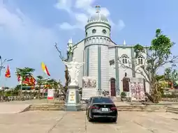 Located at the end of a cute village along a high hill, Hon Gai Church is a beautiful blue church located on a high ground in the Hon Gai area of Halong, Vietnam. It overlooks Halong City and the seaside, so it is a great place to take a walk around the church.