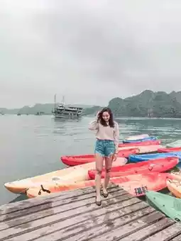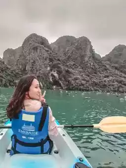 The cruise also stopped by some beautiful spots — we got to go canoeing 🛶 and visit Titop Island, where the short hike to the top rewarded us with an absolutely amazing panoramic view of Halong Bay 🌅. Totally worth the climb!