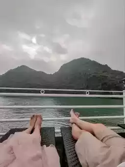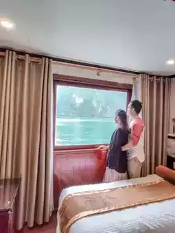 We chose the one-night stay on the cruise, which was just perfect — enough time to enjoy the view right from our room in the morning 🌄, and not feel too rushed. Waking up surrounded by the calm emerald waters, limestone cliffs, and those classic Halong Bay cruise silhouettes in the distance — the view was everything 😍. It’s the kind of scene you want to pause and soak in slowly, with a cup of coffee in hand ☕ and zero rush.