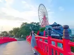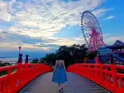 Nighttime beauty: The Ferris wheel lights up at night, creating a dazzling atmosphere.