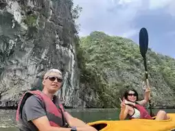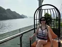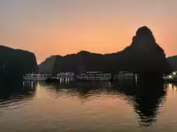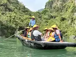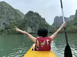 At 5:20 in the morning, I sat on the balcony chair to welcome the sunrise over Halong Bay. It was still a warm orange when it rose slowly. Less than half an hour later, the sky gradually brightened. The sound of the motor of the local residents' boats broke the silence, shuttling between the cruise ships to sell snacks and drinks. After breakfast, we took a shuttle boat to Ti-top Island. Today we will go to Bai Tu Long Bay for a full day of exploration, including kayaking through sea caves, swimming on the mysterious beach, visiting the pearl farm and ME CUNG stalactite cave; the kayaking itinerary can get close to every island, and you can also cross the natural sea caves to test your control skills. Immersed in the world heritage and natural beauty, my wife and I began to recite poems...