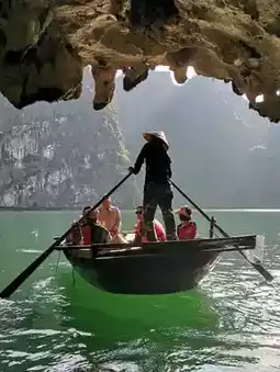From Hanoi: Book a transfer service (limousine bus, private car, or shuttle) directly through the cruise — about 2.5 hours from Hanoi to Tuan Chau Marina.