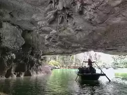 The boat glided smoothly between the cliffs, and I really enjoyed being on the upper deck, letting the breeze hit my face while taking in the surreal scenery. One of the stops was Thien Cung Cave — walking through the cool, echo-filled chambers lined with stalactites felt like entering a different world.