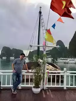 Spending a night on a cruise in Ha Long Bay felt like sailing through a watercolor painting. The journey began at midday as we boarded a traditional wooden junk boat, greeted with fresh juice and warm smiles. As we set sail, the limestone cliffs began to rise dramatically around us, each formation more surreal than the last.