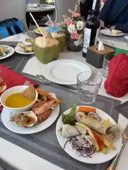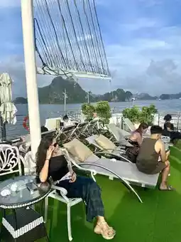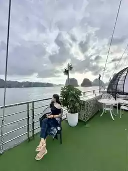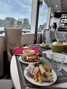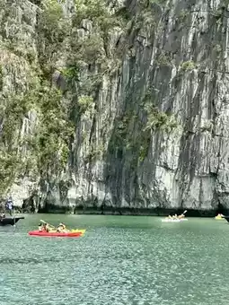 Throughout the day, we stopped at some amazing spots — Sung Sot Cave was huge and beautiful, and we got to go kayaking through quiet lagoons where everything felt so peaceful. Lunch on the boat was delicious, with fresh seafood and Vietnamese dishes.