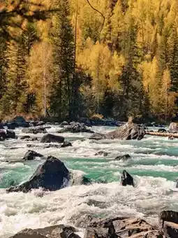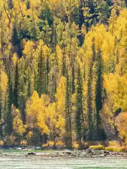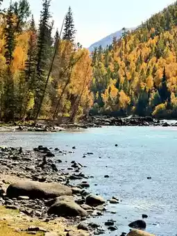 The Kanas "Three Bays" consist of Fairy Bay, Moon Bay, and Wolong Bay, with the section from Moon Bay to Wolong Bay considered the essence of the "Three Bays." Most visitors walk along the riverside boardwalk downstream, enjoying the stunning scenery on both sides of the river. This route is about 2.5 kilometers long and takes approximately 2 hours to hike.
