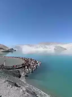 White Sand Lake, also known as Chakrak Lake, is a glacial lake on the Pamir Plateau, formed by the convergence of meltwater from glaciers. Its clear and azure waters reflect the blue sky and distant snow-capped mountains. Along the lakeshore, rolling silvery-white sand hills stretch continuously, their pristine color creating a striking and breathtaking contrast with the jade-like waters. Under the sunlight, the sand hills, lake, and snow-capped peaks complement each other, forming a magnificent and fantastical natural panorama. It is a dazzling sapphire on the Pamir Plateau.