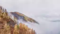watching the falling yellow leaves dance with the mist.