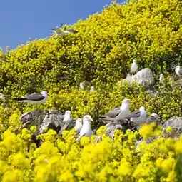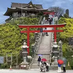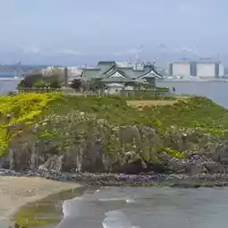 In mid-May, rape blossoms bloom, creating a beautiful contrast between the red of the torii gate, the blue sky, and the white petrels. There are many places of interest nearby, such as Kabushima Resting Area and Kabushima Promenade Park. It is also the Trail Head & End Point, the northern entrance to the Michinoku Shiokaze Trail.