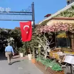 Charming weather, blue sky and white clouds. After getting off the boat, you can walk for 10 minutes to a large shopping mall. Many shops sell leather jackets, carpets and Turkish lamps, etc. There is a market to visit