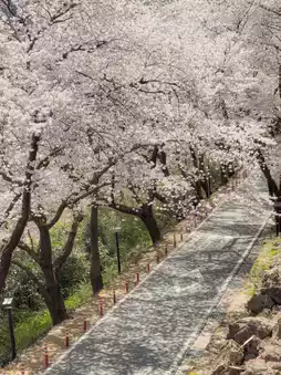 The scenery of countless cherry blossom trees lined up is really picturesque and pretty.