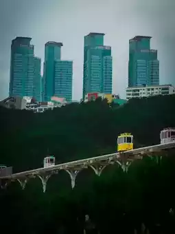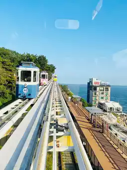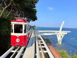 I took the Blue Line Park Sky Capsule and enjoyed the beautiful Busan sea. The blue sea and beach scenery outside the window were so beautiful. The sea view from the train was truly fantastic!