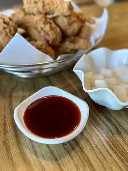 This is with bones. Boneless is +2,000W. Golden fried chicken with a crispy texture and soft meat with plenty of gravy. The sweet and spicy BBQ sauce is exquisitely mixed in for an appetizing taste.