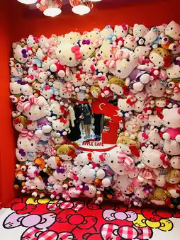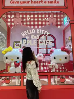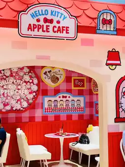 Hello Kitty Apple Cafe is a unique pop-up cafe and café in Busan. It's located inside Centum City Mall, a popular shopping and dining destination. The brightly colored entrance makes it easy to spot. The prop shop is free to enter, but the cafe might have a wait if it's full. It's a popular spot, so if you want to explore more leisurely, we recommend visiting early on a weekday. Don't forget to take a commemorative photo at the photo zone.