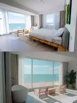 180° Xisheng for the sea view queen room, etc. Wabi style decoration, simple and good looking bedding soft and comfortable, clean and tidy Each room can satisfy your wish to see the sea Oversized floor-to-ceiling glass windows with large white bathtub