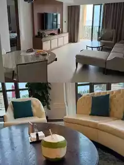 The moment you walk into the hotel lobby, you feel like you've traveled to a European manor! Gothic domes + Baroque columns, off-white tones with Mediterranean blue, full of luxury~ The best thing is the floor-to-ceiling windows in the lobby bar. The sunlight shines in like it has its own filter, and you can take ins-style blockbusters with a casual shot 📸! Passing through the lobby is the coconut grove beach, and the view of the sea and sky made me scream directly - this is what a vacation should be like!
