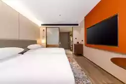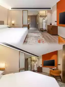 1.8m large beds with spine-friendly mattresses guarantee instant relaxation. Well-equipped rooms feature smart dry-wet separated bathrooms 👍, blending Tang style with modern design seamlessly. Silk walls, courtyard-style lighting, and Chinese painting accents make every corner Instagram-worthy. Multiple pillow options and custom toiletries show they truly care about business travelers~