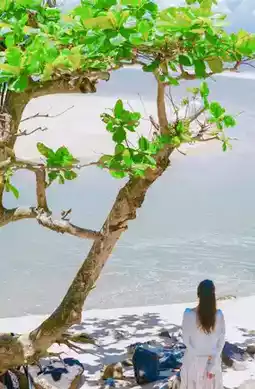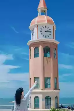 Wuyuan River National Wetland Park, in search of the Lonely Tree. Follow the path to the left of Hongyantang, and you'll find a solitary tree standing by the riverbed. Even lonelier than Wanaka's famous tree, it has become a popular photo spot. Fine sandy beaches, cloud-shaped swings, and the flying house that has since flown away. The 6-kilometer-long Holiday Beach features pristine white sands and an ocean-view boardwalk, with rocky outcrops on the western side. The red ocean-view clock tower connects to Xiuxiu Beach, making for stunning photographs. Near the Century Bridge, discover the seaside cloud cave, the Cloud Cave Library, and expansive ocean views—perfect for reading, watching the sea, and enjoying what might be the most beautiful sunset scenery.