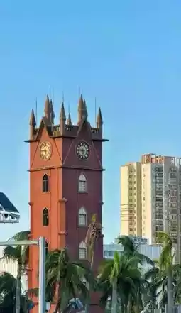 | The ancient and charming clock tower~. Dear friends, when you come to Haikou, you absolutely cannot miss this ancient and charming clock tower! It stands quietly in a corner of the city like a silent elder full of stories, witnessing the changes of Haikou through the years.