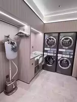 🏨 The hotel rooms are bright and spacious with brand-new facilities. The 🛏 bedding is soft and cozy, and the slippers and 🪥 toiletries are high quality. There’s even a self-service laundry, so you can toss in all your travel clothes✌. Right at the entrance, there’s a striking Haikou landmark photo wall—snap a pic📸 and it’s instantly Instagram-worthy.