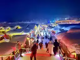 As night falls over China Snow Town, the village lights up in a warm, golden glow. Snow-covered rooftops glisten under the moonlight, and the illuminated cottages resemble scenes from a fairytale. Couples can stroll hand-in-hand along the snow-laden paths, taking in the picturesque views and the serenity of the winter landscape.