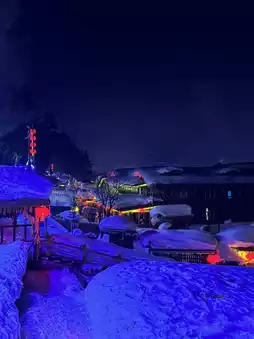 China Snow Town in winter resembles a fairytale world, with mountains and valleys covered in pristine white snow, and the air filled with a clean, crisp chill.