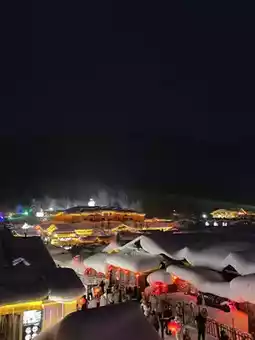 Welcome to China Snow Town near Harbin in Heilongjiang Province, China! This picturesque village nestled among the mountains is blanketed with soft, fluffy snow ❄️🧣