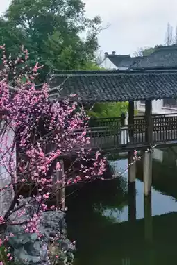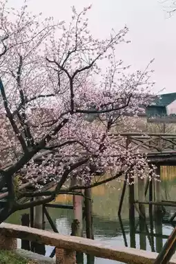 First, view the cherry blossoms 🌸 by the long wooden bridge in front of Gongchen Gate.