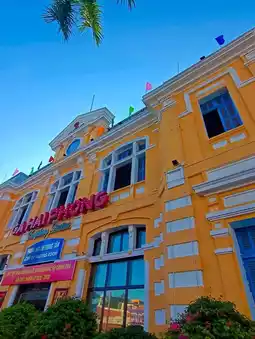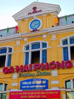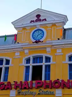 The striking yellow building of Haiphong Railway Station is a beautiful, historic European-style structure founded in 1902 by the French. It's notable for its large arched windows, stone pillars, green stone paving, and circular clock. Inside, the building houses a ticket office, a passenger waiting hall, and other facilities.