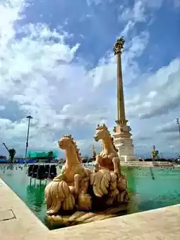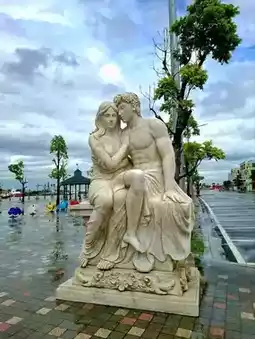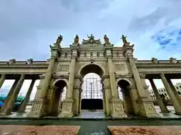 The entrance arch of Quảng trường Hoàng gia Châu Âu (Royal Square) on Vũ Yên Island is elegantly Roman-style.