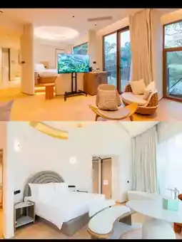 🍒 The hotel offers many room types to choose from, with the main building offering excellent value! There are also boat houses, mushroom houses, castle rooms... We stayed in a water boat house with a loft structure, featuring huge floor-to-ceiling windows. When you open the curtains, you see a lake view like an oil painting! The pointed roof gives it a complete fairy tale feel!