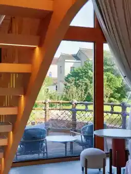 First-time boat house experience - absolutely stunning! Duplex design + 270° lakeside terrace, double-layer curved floor-to-ceiling windows. Soak in the tub🛁 enjoying lake views, with children's beds and cute tents⛺️ upstairs - adorable beyond words!