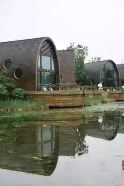 The hotel's unique architecture is a highlight—💦 floating boat houses, 🍄 mushroom villas with slides, and 🏰 fairytale-like lakeside castles—even if you're not staying, the photo ops are incredible!