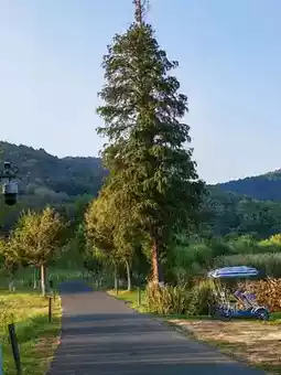 Walking along the lakeside path, sunlight filters through the leaves, creating patches of dappled light and shadow. Tall trees with dense foliage stand like loyal guardians protecting this pure land. Occasionally, a few bicycles for rent quietly rest nearby, waiting for visitors to embark on an exploration journey.