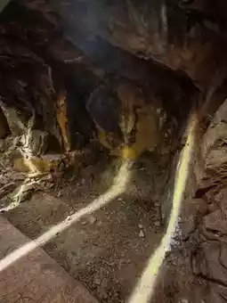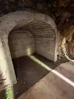 The space inside is not spacious but has a unique tranquil atmosphere. Occasionally, water droplets fall from the ceiling, breaking the long silence with crisp sounds. The shelter’s corridors twist and turn like a sleeping giant dragon coiled within the mountain. Every so often, you see small separated spaces that were once likely used for storing supplies or as refuges. Now, only empty walls and floors remain, filled with a sense of historical vicissitude.