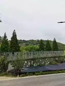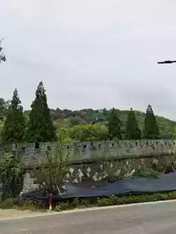 Looking at the city wall from afar, it follows the mountain's undulations, blending seamlessly with the green hills. The trees on the mountain are lush, like loyal guardians of the wall. The road at the foot of the wall occasionally sees vehicles passing by, stirring up some dust, but it cannot disturb this long-settled tranquility. Beside the black sunshade net, newly planted saplings gently sway in the breeze, as if paying tribute to the ancient city wall.
