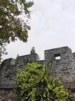 As I approach it, the mottled bricks are the engraved lines of time, each crack hiding stories of the past. The square holes on the wall resemble the eyes of the dragon gazing at the world, once witnessing the clamor of war horses and soldiers, now accompanied only by the breeze and white clouds. The freely climbing greenery is a poetic blend of nature and history, with tender green leaves stretching over the ancient bricks, as if telling tales of life's resilience and the weight of history.